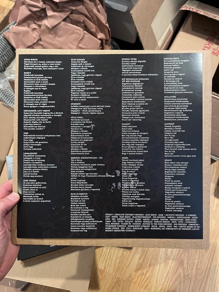 They are Retorsion, reeking like the stench of burning death! Retorsion is an old-school grindcore band from Budapest, worshipping Repulsion. This is their first LP: 20 songs in 27 minutes, blasting uncompromising grindcore about the horror of humanity and Hungarian daily life.